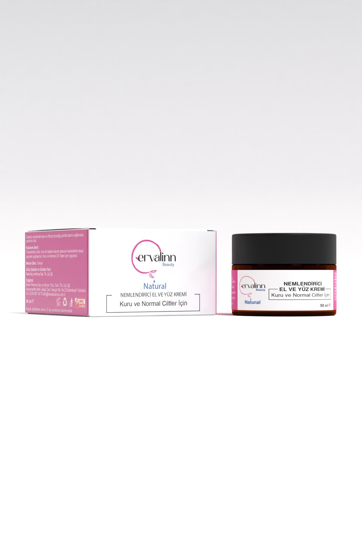 Ervalinn Beauty Natural Nemlendirici El ve Yüz Kremi 50 ml, cildinizi nemlendirmeye ve ihtiyaç duyduğu günlük bakımı sağlamaya yardımcı olur.